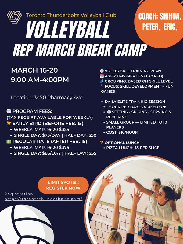 ⚠️ Note: No refund or credit for missed classes. Join the Toronto Thunderbolts Volleyball community today!